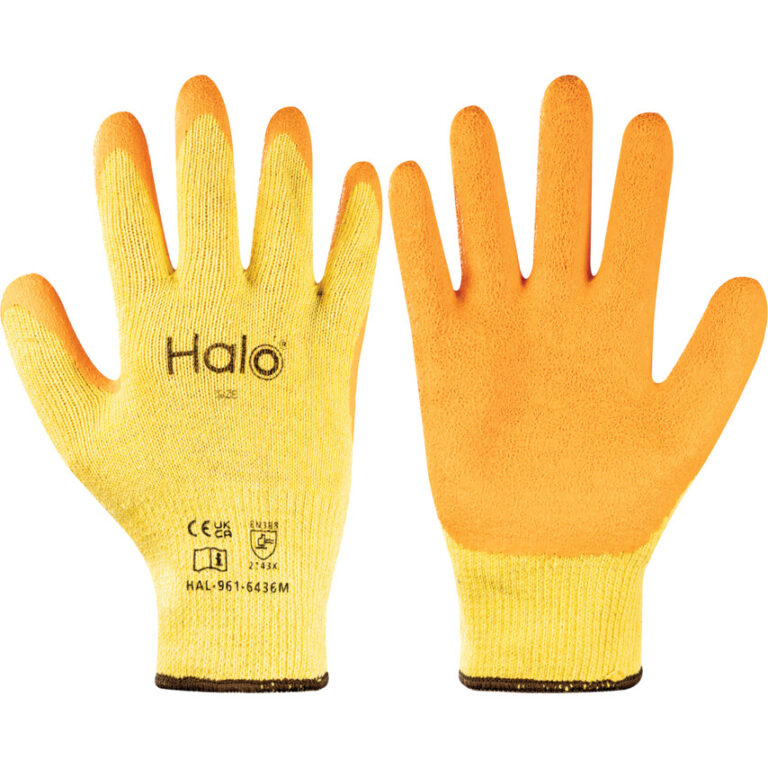 Mechanical Hazard Gloves, Orange/Yellow, Cotton/Polyester Liner, Latex Coating, EN388: 2016, 2, 1, 4, 3, X, Size 9