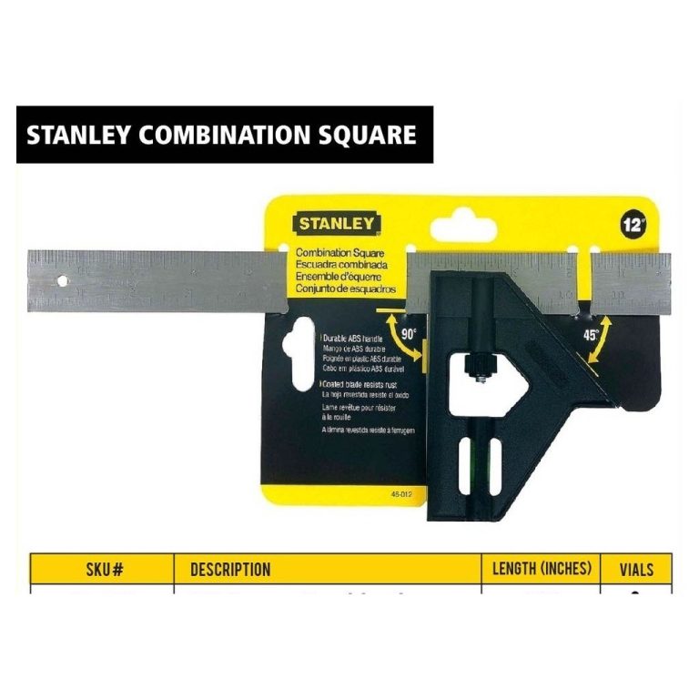 STANLEY ORIGINAL HAND TOOLS SPECIFICATIONS: Product: PLASTIC COMBINATION SQUARE 12″ Brand: STANLEY Part Number: 46-012 Quantity: 1 PC FEATURES &