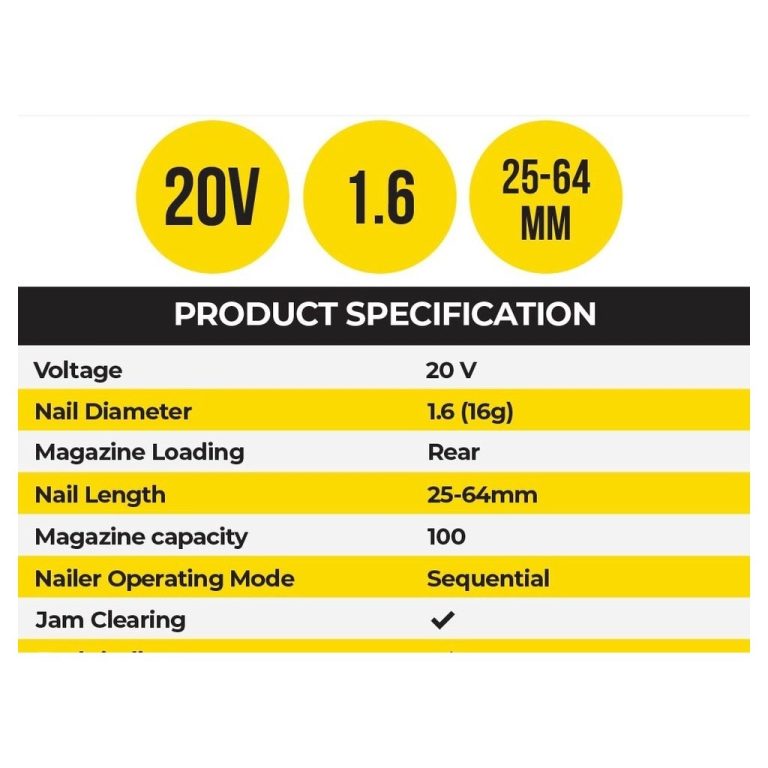 STANLEY Cordless 16-Gauge Finishing Nailer Come with 2×2.0Ah Battery + Charger (20V) SCN616D2K