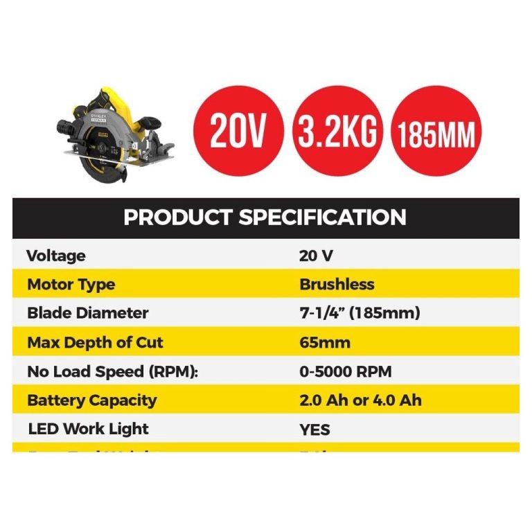 20V STANLEY® FATMAX® V20 BRUSHLESS CIRCULAR SAW FEATURES & BENEFITS – With improved battery technology, no memory effect and minimal