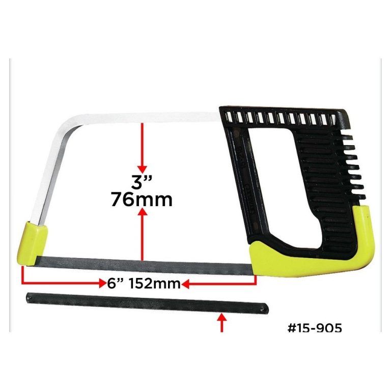 DESCRIPTION : -10-inch hacksaw with a rigid steel frame and molded rubber cushion grip -D-shaped guard protects hands and knuckles