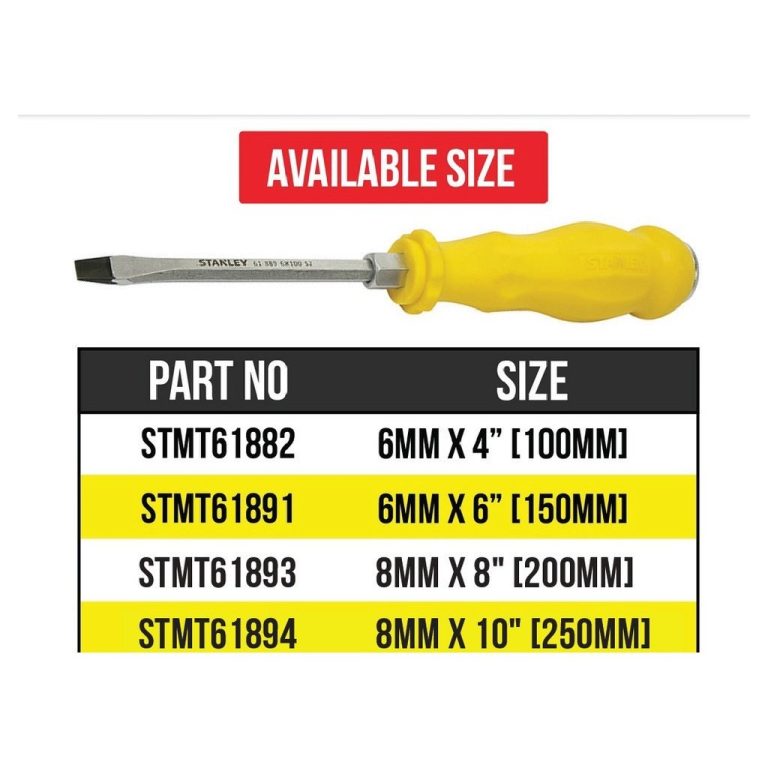 STANLEY TANK THRU FLAT HEAD SCREWDRIVER SIZE 6MMx4″ – 12″ [ STMT61889 | STMT61891 | STMT61893 | STMT61894 | STMT61895 ]