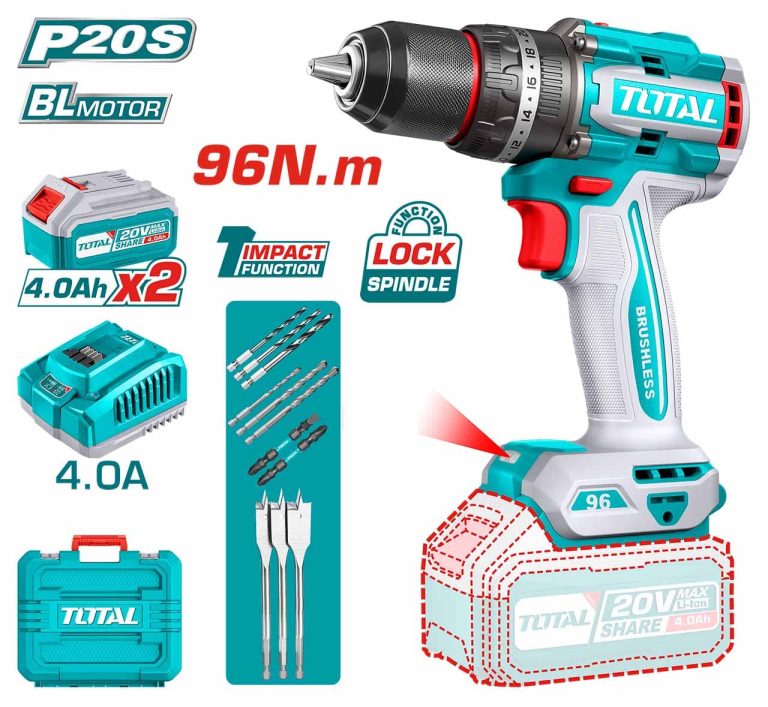Description Brushless Motor. Package comes with, 2 pcs 20V 2.0Ah Batteries 1 pc Fast Intelligent Charger 4 pcs HSS drill