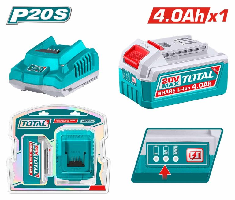 Description LED battery power indicator. Fits all TOTAL P20S 20V cordless power tools. Package comes with, 1 pc Li-ion 4.0Ah
