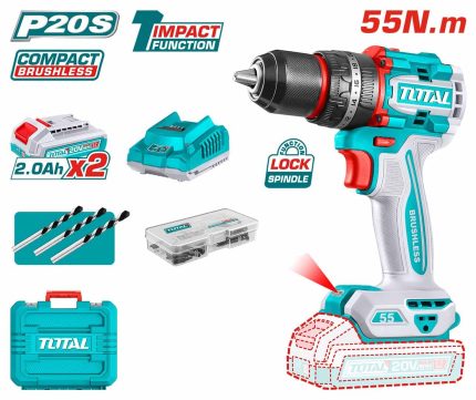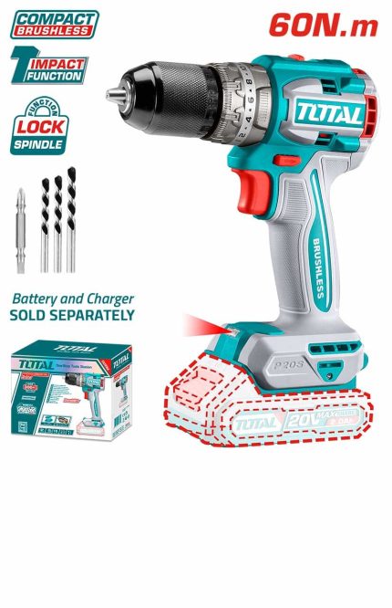 Description Brushless Motor. Integrated work light. Mechanical 2-speed gear with Spindle Lock function. Auto-lock metal keyless chuck head. Package comes