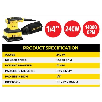 STANLEY SSS310 SHEET SANDER 1/2 | 310W DESCRIPTION: Make your woodworks DIY projects with Stanley SSS310 12 sheet sander. Get
