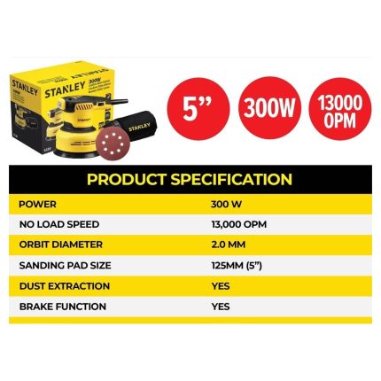 STANLEY SS30 Corded Random Orbital Sander (300W/125mm 5″)