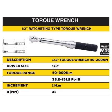 STANLEY STMT73590-8 TORQUE WRENCH 1/2″ | 40-200NM