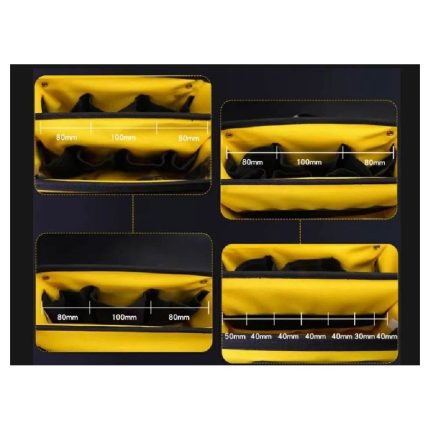 A wheeled toolbag made of tough nylon with multiple internal and external pockets for superb storage capacity and easy mobility