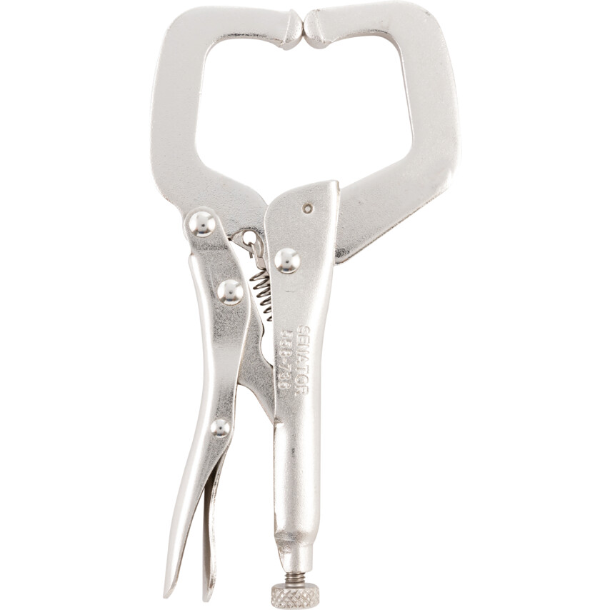 With a wide and deep jaw profile, these locking C-clamps are ideal for firmly clamping sections that a normal grip wrench cannot. Manufactured from steel, the product is available in two sizes and has an ergonomic design.
