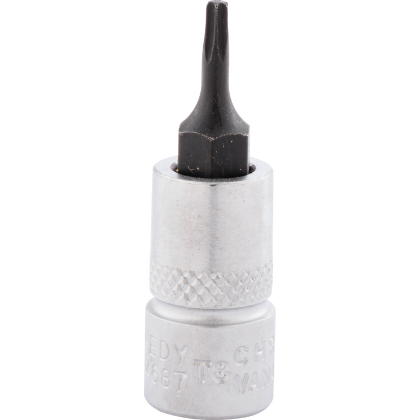 These Torx screwdriver bits are ideal for assembly and servicing of small precision mechanisms associated with electrical, electronic, ignition and refrigeration work. Each component boasts a double knurl feature that gives a high grip which is essential for a quick tool change when your hands are greasy/oily. The 12 point bi-hexagon side drive design will give a higher torque than normal sockets. Manufactured from chrome vanadium, fully chrome plated with a mirror finish and aluminium-free to ensure non-sparking. Chamfered leading edge ensures easy fastener location. Available in a range of sizes.