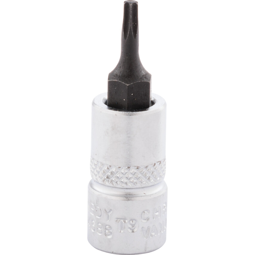 These Torx screwdriver bits are ideal for assembly and servicing of small precision mechanisms associated with electrical, electronic, ignition and refrigeration work. Each component boasts a double knurl feature that gives a high grip which is essential for a quick tool change when your hands are greasy/oily. The 12 point bi-hexagon side drive design will give a higher torque than normal sockets. Manufactured from chrome vanadium, fully chrome plated with a mirror finish and aluminium-free to ensure non-sparking. Chamfered leading edge ensures easy fastener location. Available in a range of sizes.