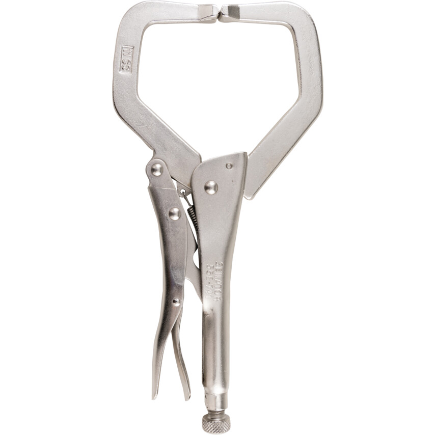 With a wide and deep jaw profile, these locking C-clamps are ideal for firmly clamping sections that a normal grip wrench cannot. Manufactured from steel, the product is available in two sizes and has an ergonomic design.