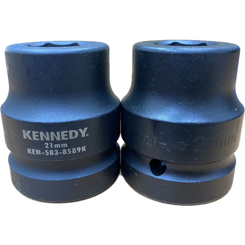 The 1 inch square drive impact socket from Kennedy® is manufactured from chrome molybdenum alloy steel with a black oxidised finish. The socket is clearly marked with laser etching, making the correct size easy to identify for a quicker selection.