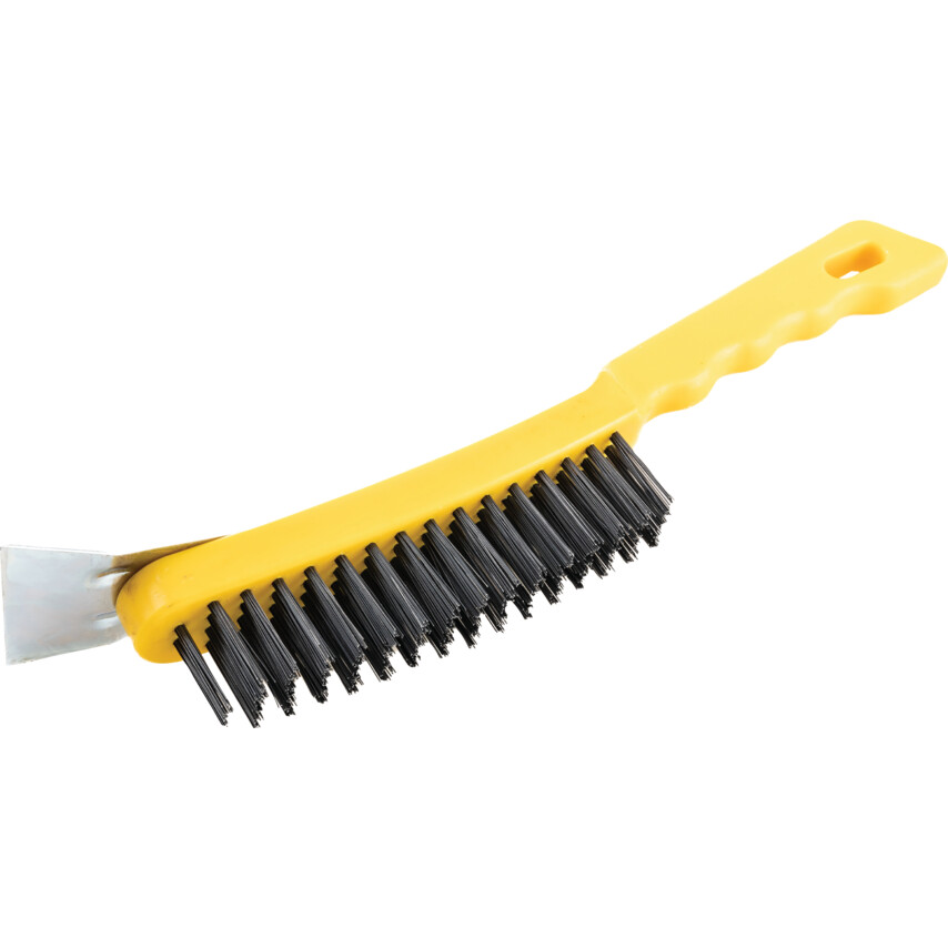 4-ROW PLASTIC HANDLE WIRE BRUSH C/W SCRAPER