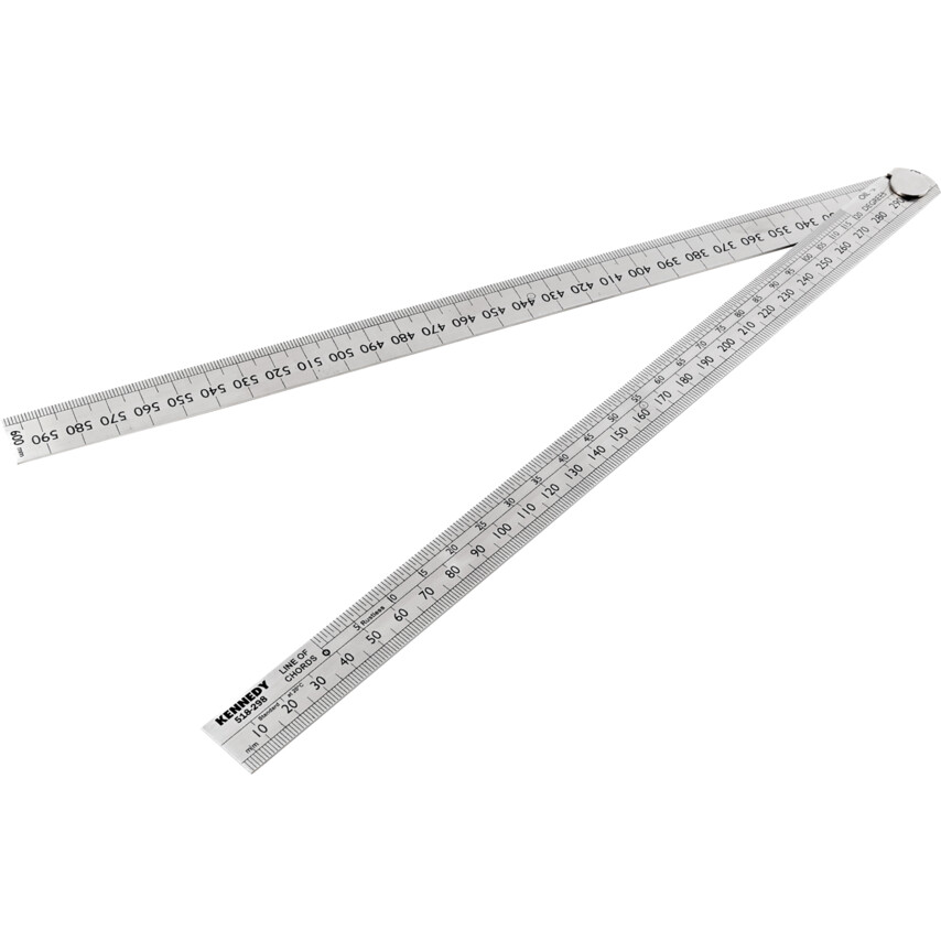 This precision tool has a line of chords scale for use in measuring angles and in determining the circumference of a circle from a diameter measurement. The rule is flexible and rustless with deep etched figures filled with black ink.