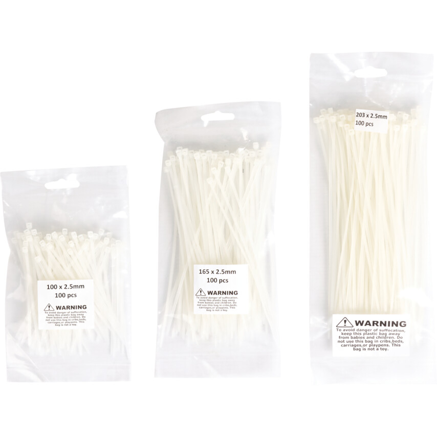 Cable Ties, Natural, 2.5mm Dia. & Assorted Length (Pk-300)