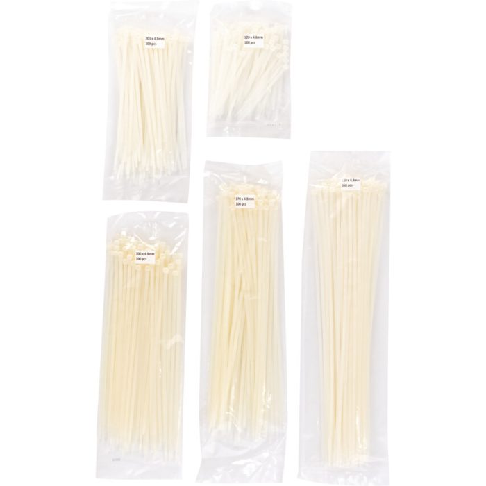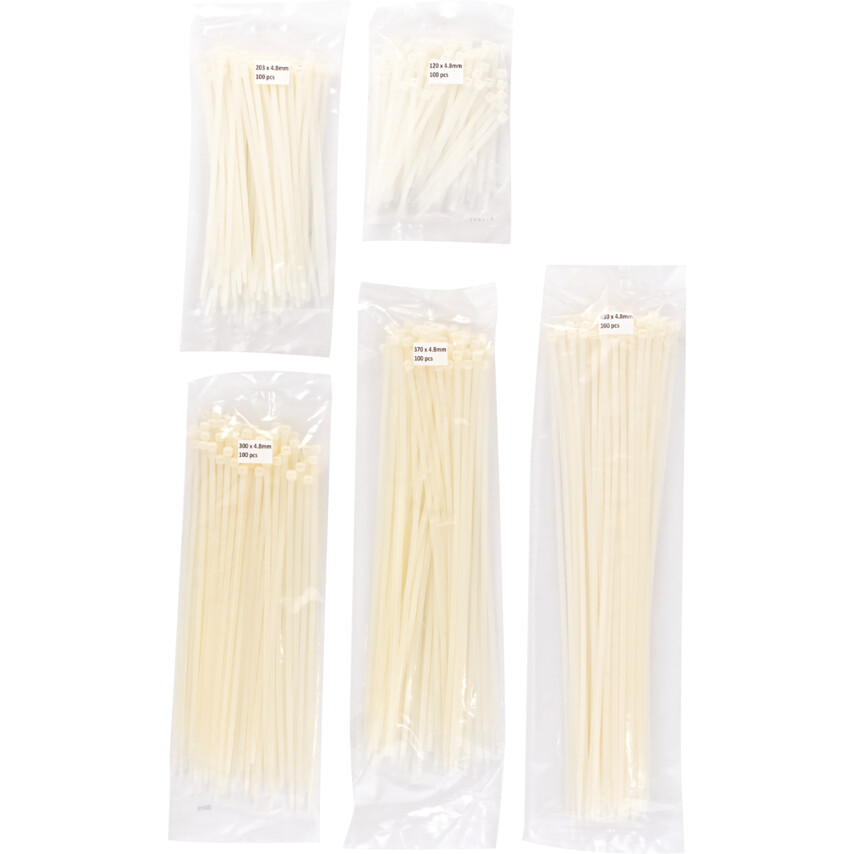 Cable Ties, Natural, 4.8mm Dia. & Assorted Length (Pk-500)