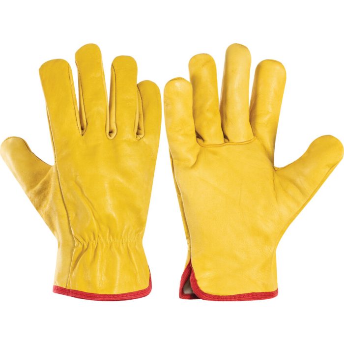 Cat I Drivers Gloves, Yellow, Leather Coating, Unlined, Size 10