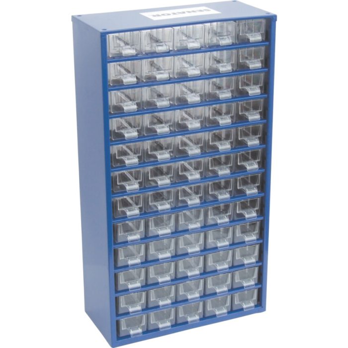 Drawer Cabinet, Steel/Polypropylene, Blue/Transparent, 306x155x551mm, 60 Drawers