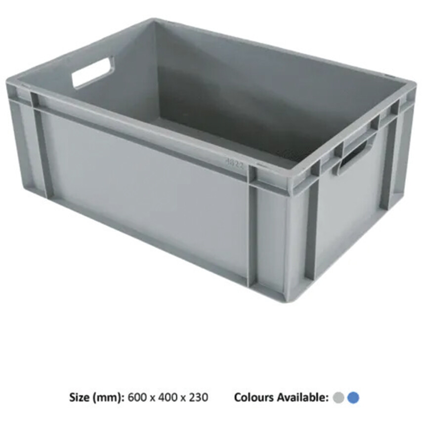 This range of easy wipe clean Euro Boxes are ideal for any circumstance in which hygienic, stackable, plastic containers play an important role in transporting and storing goods. Constructed from a hard wearing plastic that is resistant to both acid and alkaline solutions as well as providing high performance in both cold and heat. Fitted with comfort ergonomic handles and can be used with matching lids (sold separately).