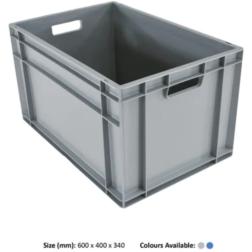 This range of easy wipe clean Euro Boxes are ideal for any circumstance in which hygienic, stackable, plastic containers play an important role in transporting and storing goods. Constructed from a hard wearing plastic that is resistant to both acid and alkaline solutions as well as providing high performance in both cold and heat. Fitted with comfort ergonomic handles and can be used with matching lids (sold separately).