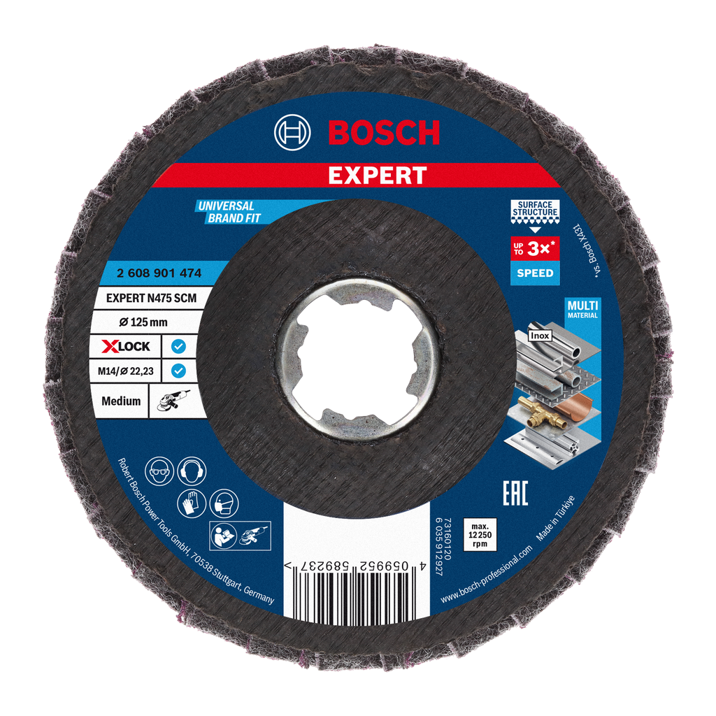 Long Life finishing metal Strong, flexible bonding with Bosch Surface Structure 3D structure allows grit through the fleece Consistent cut