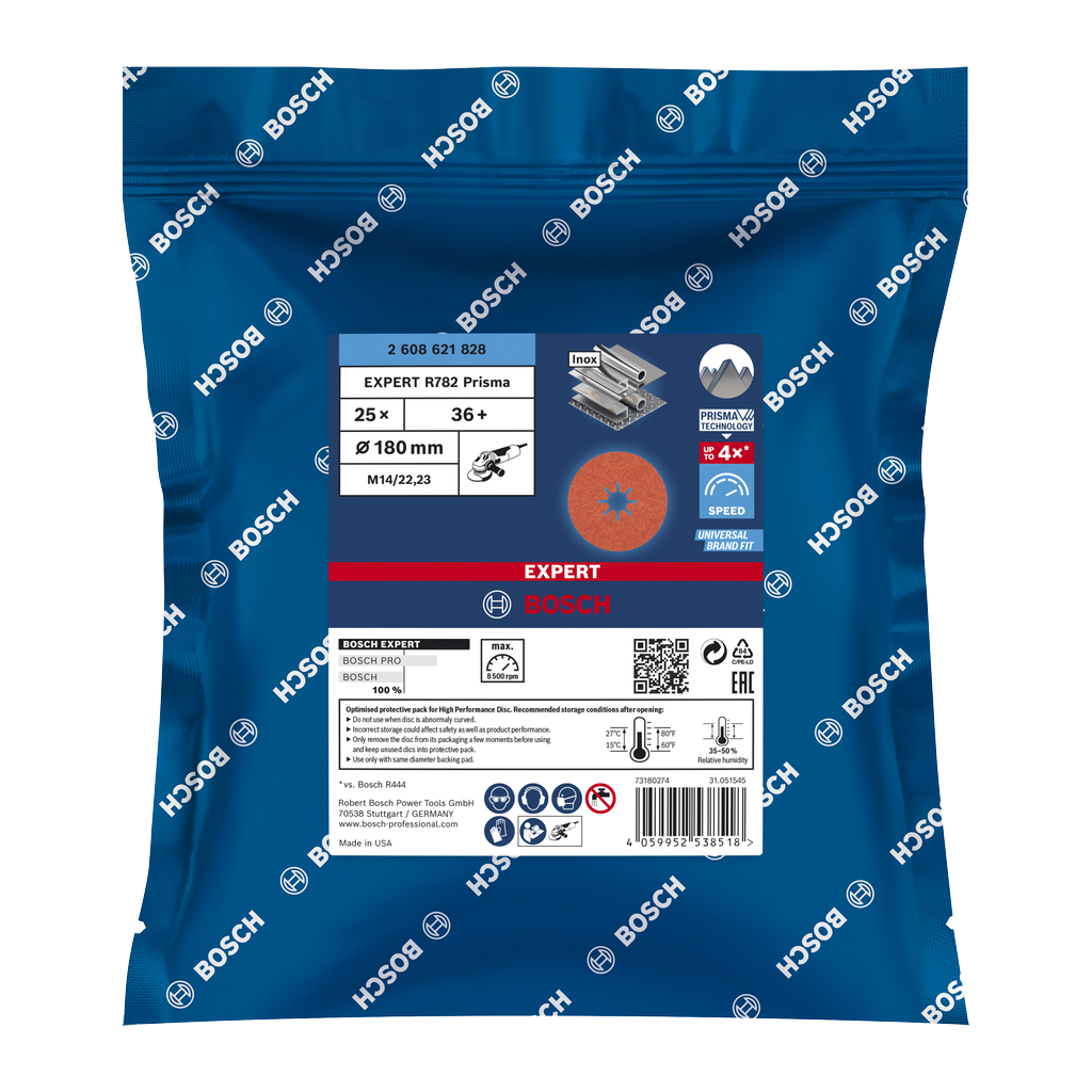 - Fast stock removal with Bosch Prisma Ceramic technology