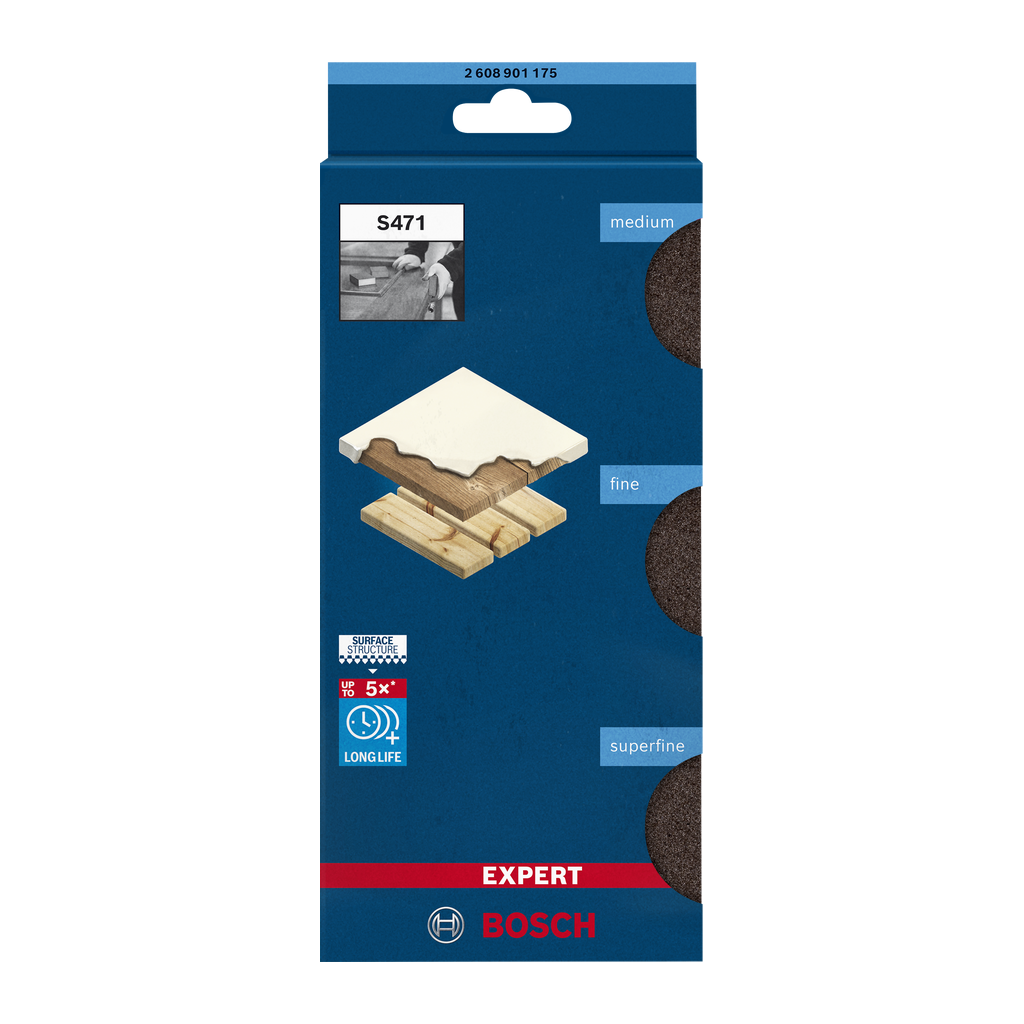 Long Life sanding wood and paint Strong, flexible bonding with Bosch Surface Structure Sponge moulds to shapes for even pressure