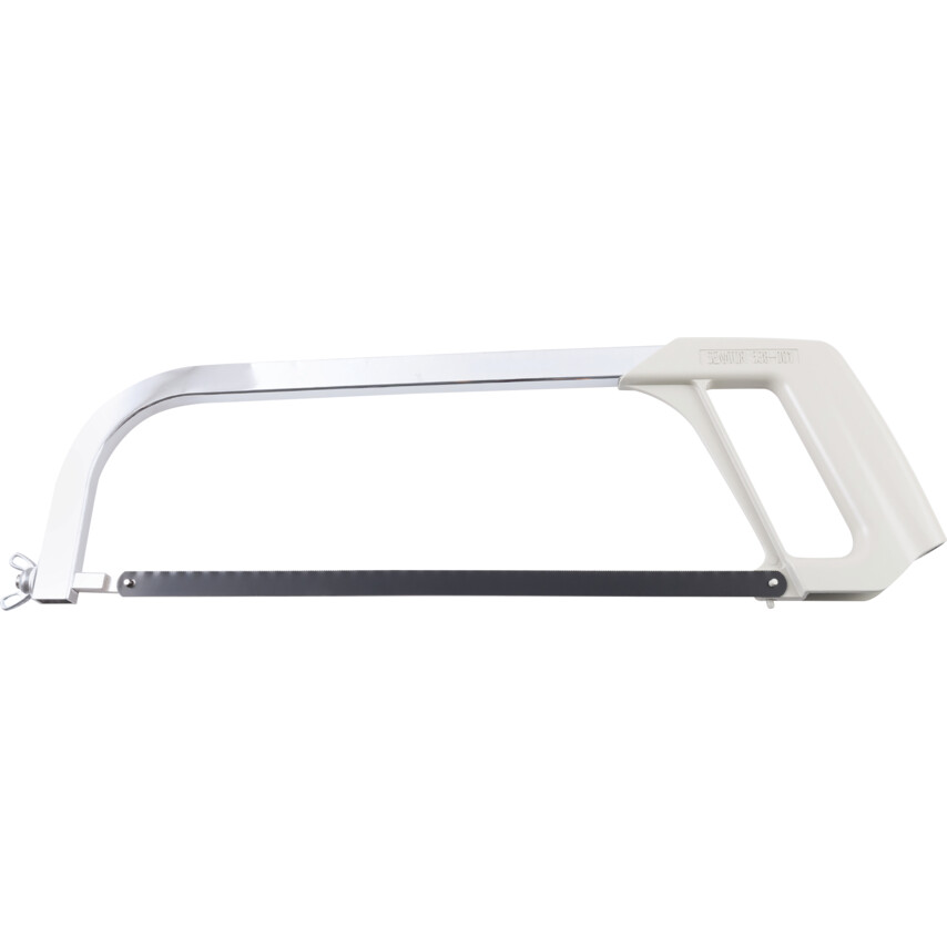 Suited primarily for light-duty use, this Hacksaw frame and blade is a simple way of getting to work on your desired project immediately. Comprised of a lightweight body and wing nut blade tensioner, the hacksa w frame is supplied with a 24 TPI accompanying blade.
