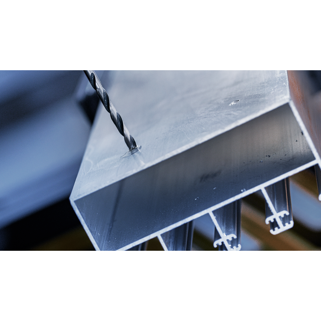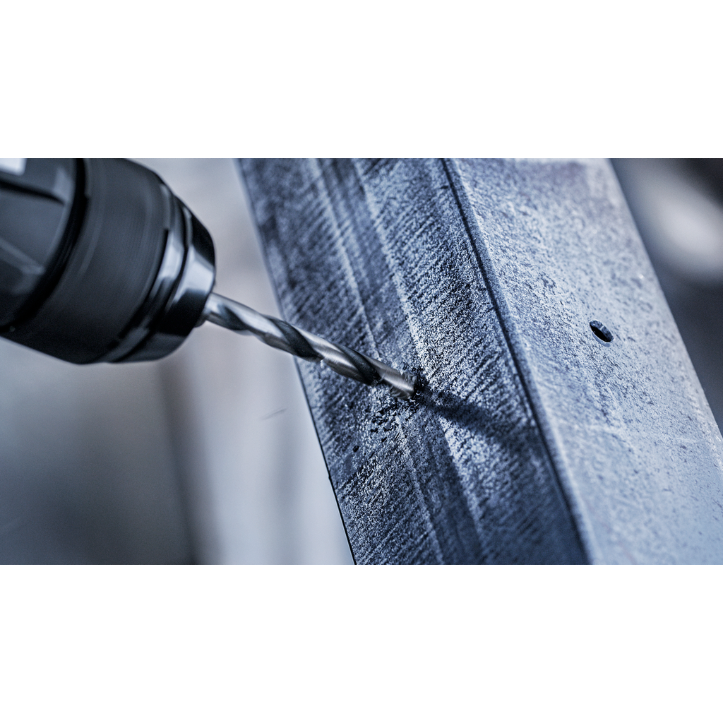- Low risk of breakage due to highly elastic body, black-oxide coated flute; DIN 338, Type N, 135-degree tip