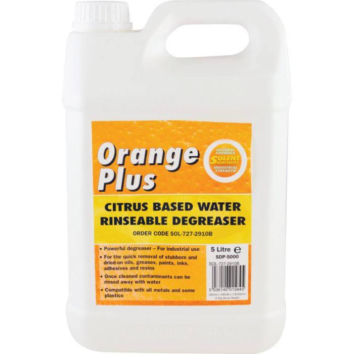 A Citrus-Based Water Rinseable Degreaser, Orange-Plus is a highly effective in the removal of stubborn and heavy oils, greases, paints, inks, adhesive and resins from engineering components and equipment.