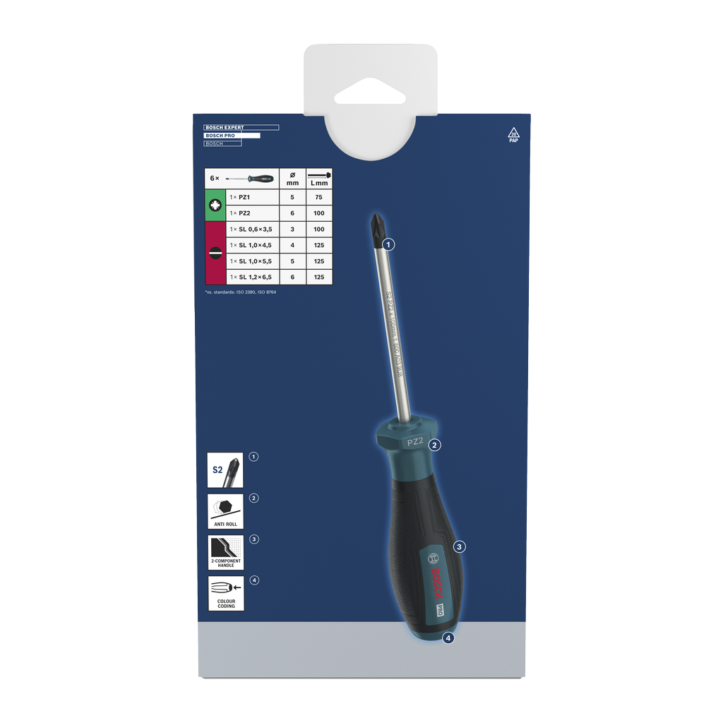 PRO SCREWDRIVER PZ/SL SET, 6 PCS