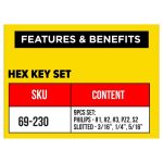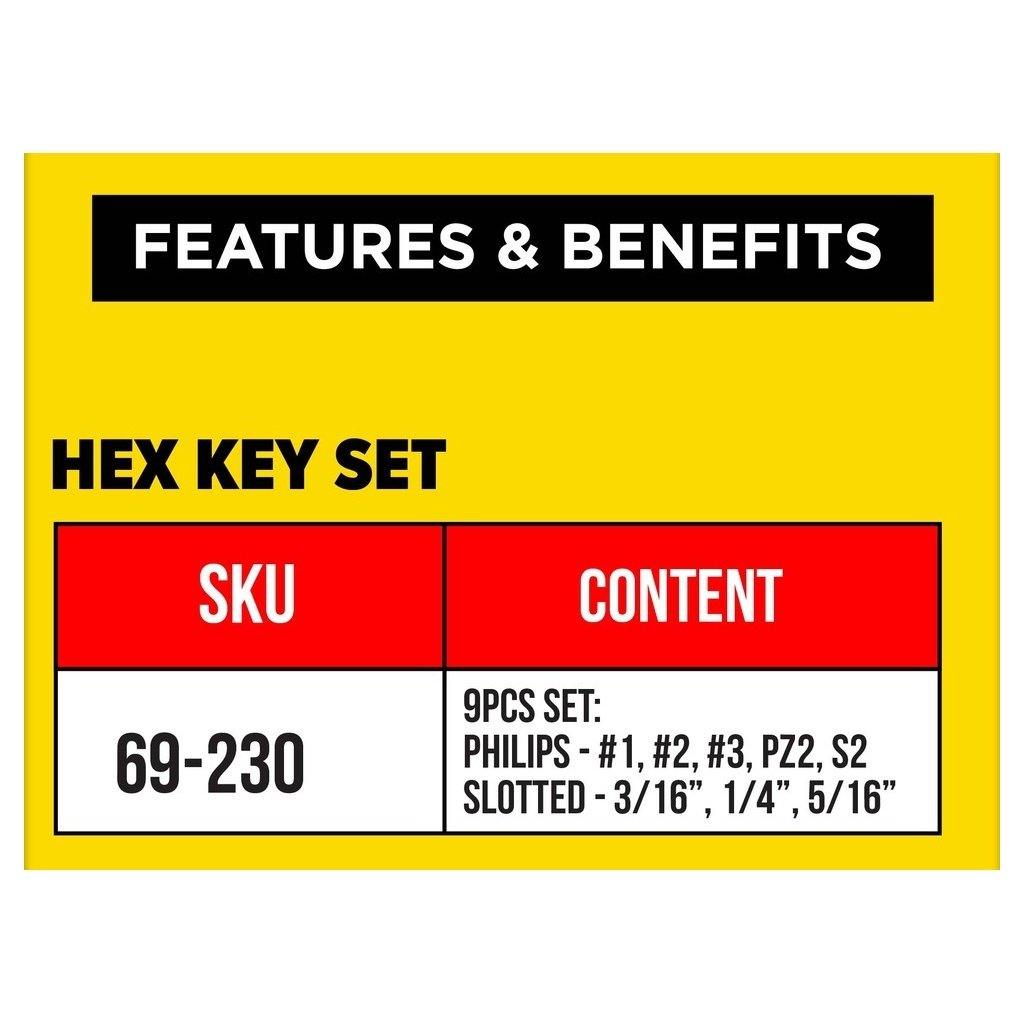 Include this allen key set in your tool box and ensure that you do not have to struggle to fasten a deeply seated screw or loosen a tightly wound one.