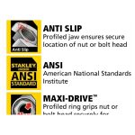 -MaxiDrive and anti-slip open ended jaw shape maintains grip on the fastener with only slight rotational pressure