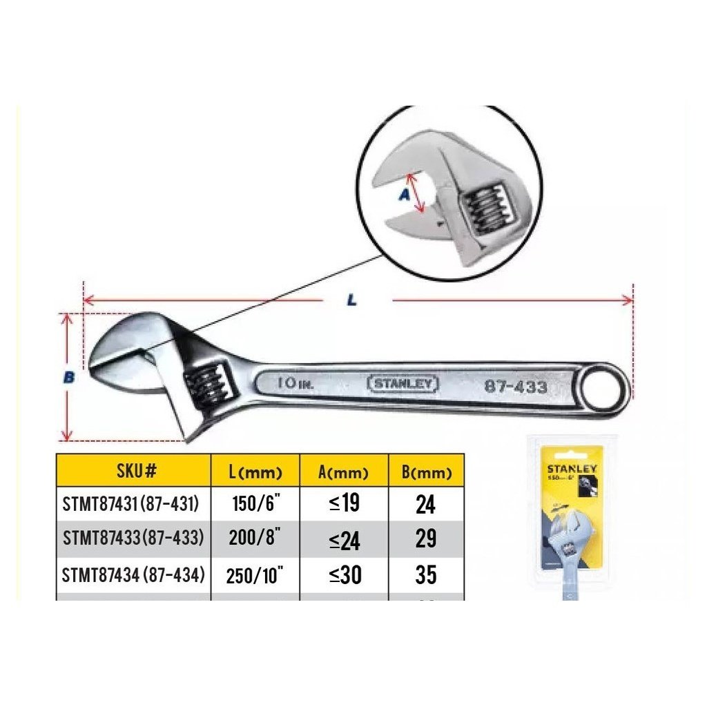 STANLEY Micro Satin Finished Adjustable Wrench (6″/8″/10″/12″/15″) STMT87431-8