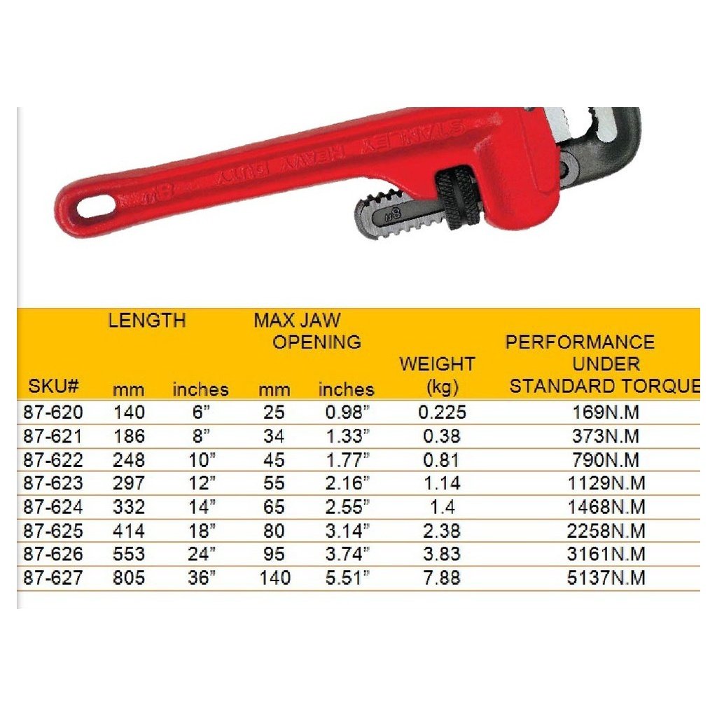 STANLEY Pipe Wrench 87-620-S | 6″/140mm | 8”/186mm | 10″/248mm | 12″/297mm | 14″/332mm | 18″/457mm