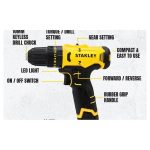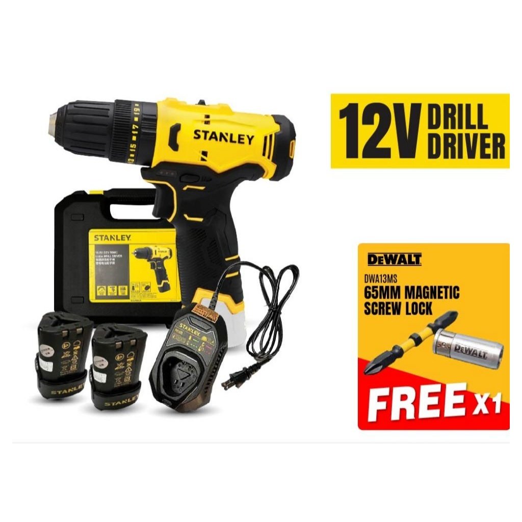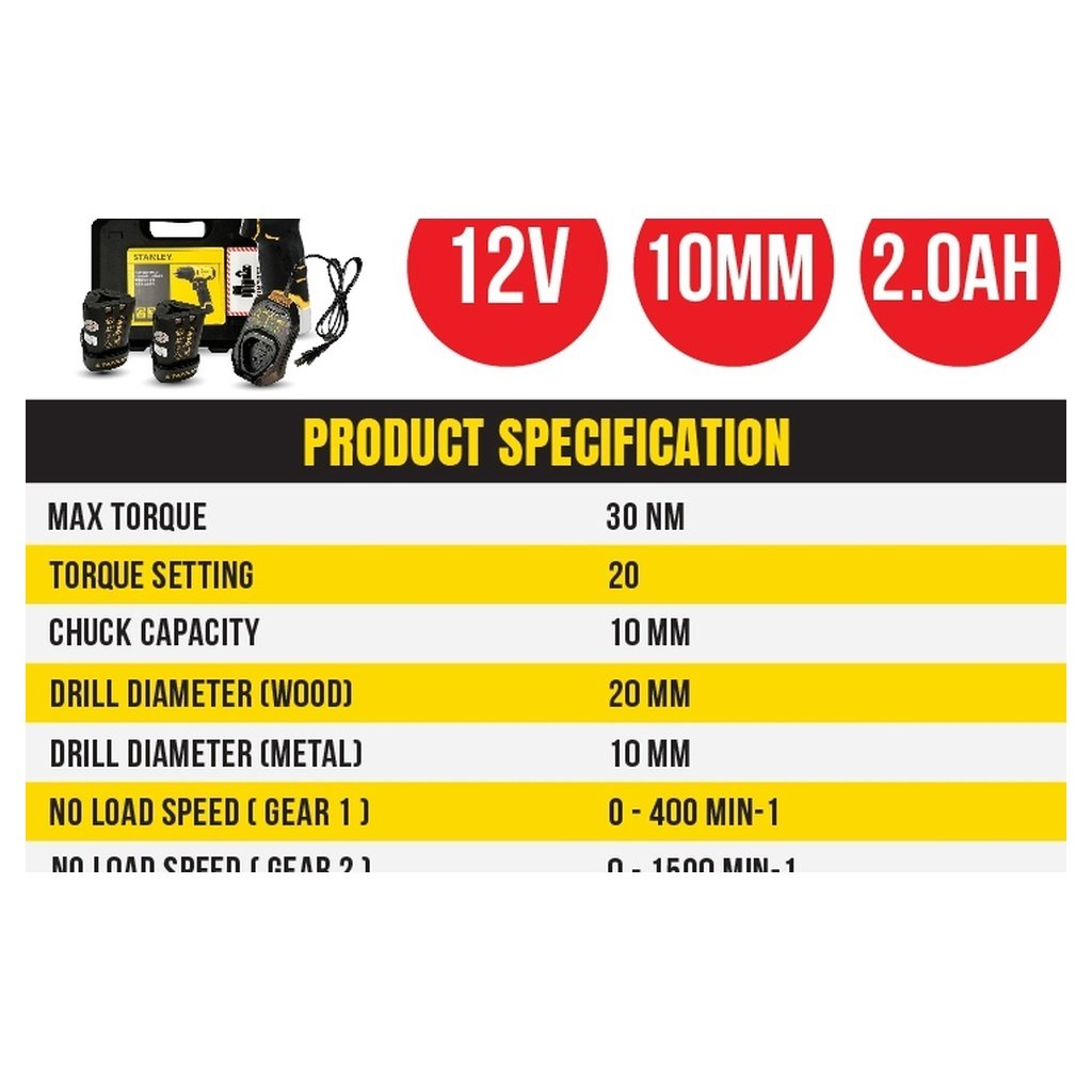 Stanley SCD10D2K Cordless Drill Driver 12V | 10MM Come With 2x 2.0AH Battery & 1x Charger / Gerudi Pemutar Skru
