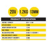• Keyless chuck with a diameter of 13 mm allows for easy tool change without the need for additional tools.
