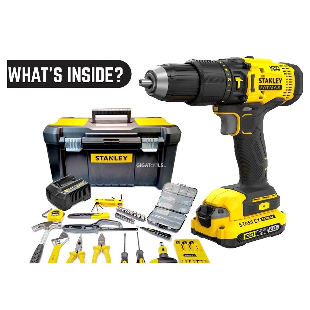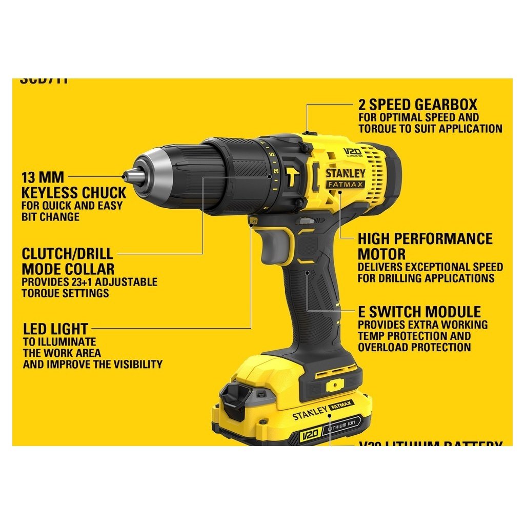 STANLEY SCD711C1H Hammer Drill Driver (20V/13mm/50nm) + Accessory (48 Pcs) + Battery + Charger