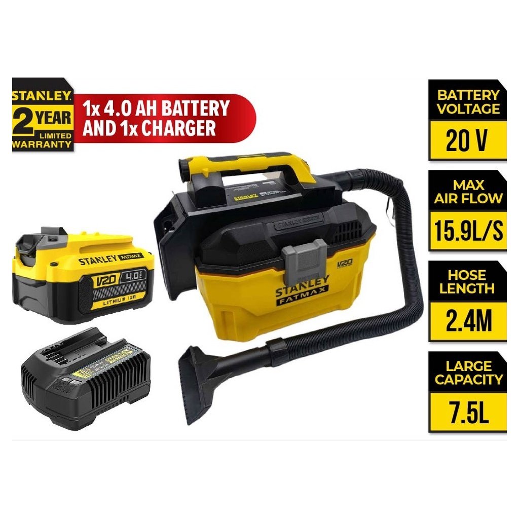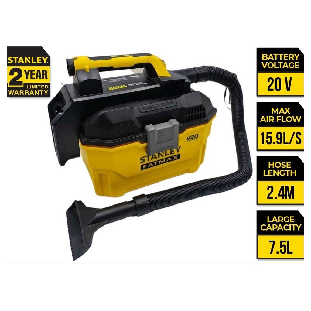 Stanley SCV002 20V Cordless Wet & Dry Vacuum Cleaner 7.5L/2.4M HOSE/Hepa Filter