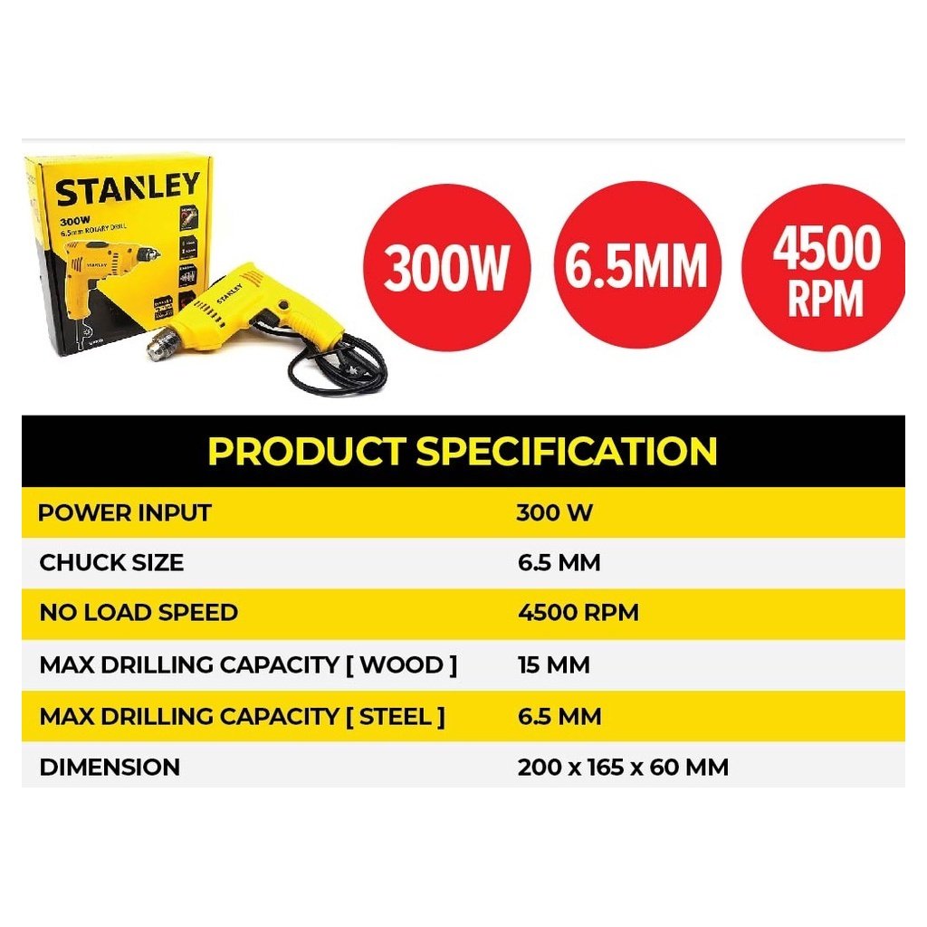 Stanley SDR3006 Rotary Drill (300W / 6.5mm)
