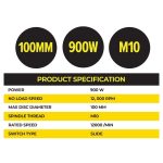 Stanley STGS9100A Corded Angle Grinder M10 (4″ x 900W x 1.8kg)