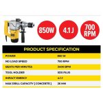 • Class-leading 850W motor for exceptional concrete drilling & chipping performance