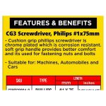 Cushion grip phillips screwdriver is chrome plated which is corrosion resistant. soft grip handle provides better comfort and its used for fastening nuts and bolts