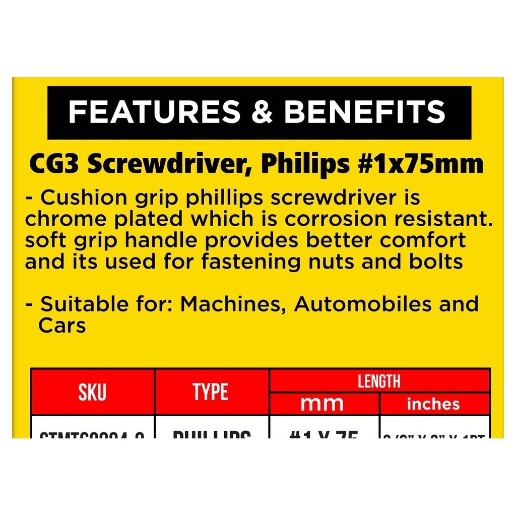 STANLEY STMT60804-8 CUSHION GRIP SCREW DRIVER, PHILLIPS #1X75mm