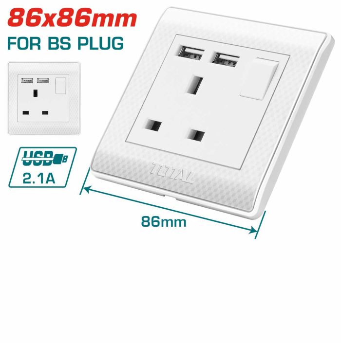 1 Gang, single pole switch suitable for British Standard (BS) plugs.